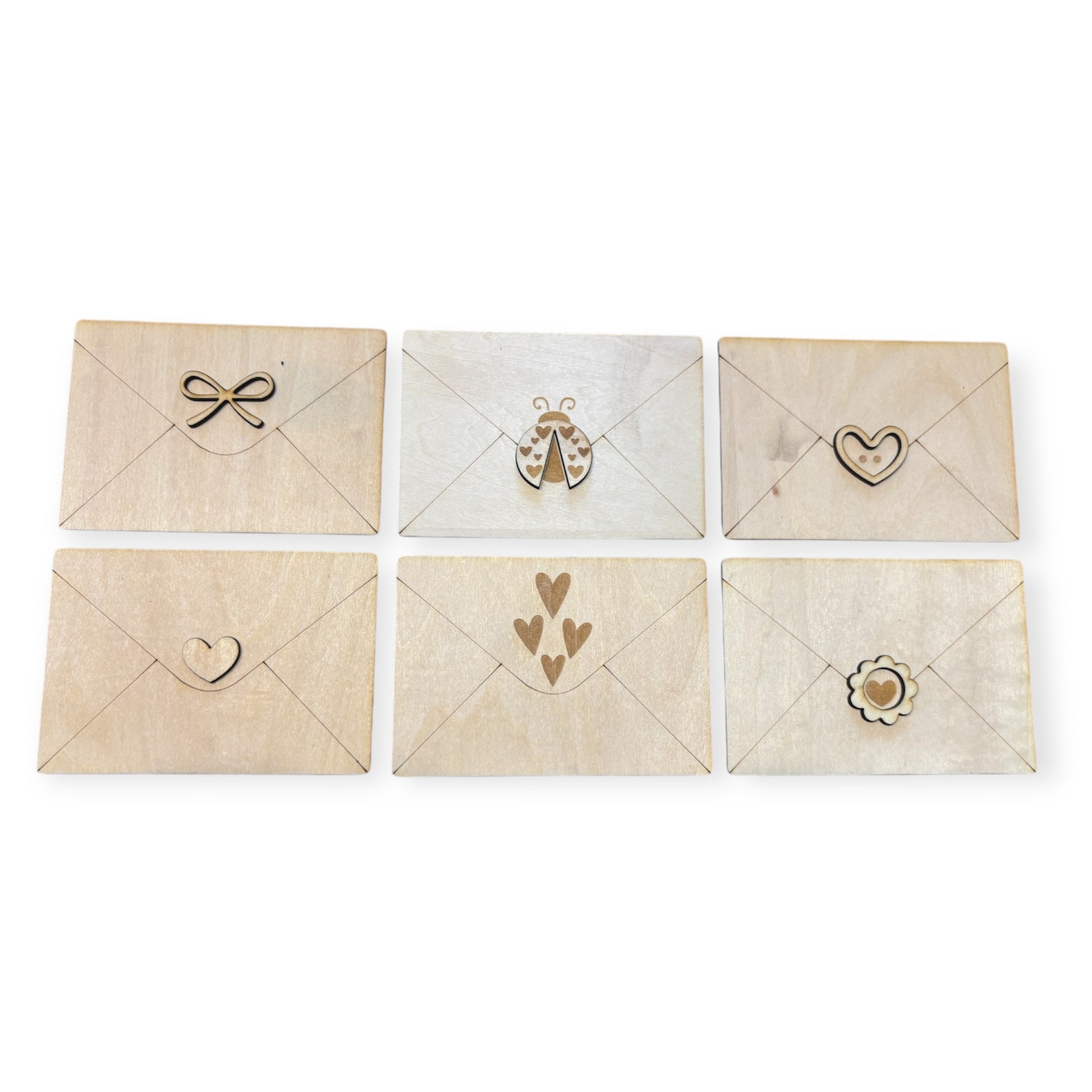 This Valentine envelope laser file bundle includes multiple envelope designs, smaller single-layer envelope designs suitable for magnets or mini decor, and a laser-cut easel stand. Files are intentionally clean, simple, and designed for reliable laser cutting without unnecessary complexity.